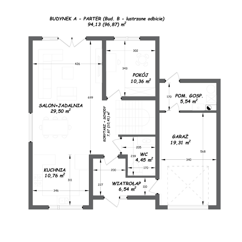 - garażu jednostanowiskowego o powierzchni 19,31m2,